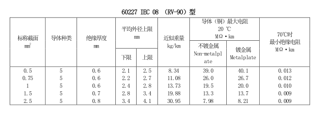 內(nèi)部布線用導體溫度為90℃的單芯軟導體無護套電纜